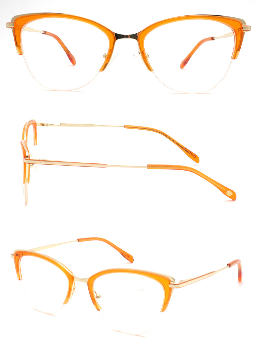 Home / All / Custom Optical Frame / Custom Women Optical Frame / Cat eye acetate half frame eyebrow optical frame with metal temple